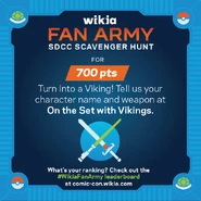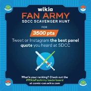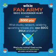 Here are the final winners of the #WikiaFanArmy SDCC Scavenger Hunt 2014:[]